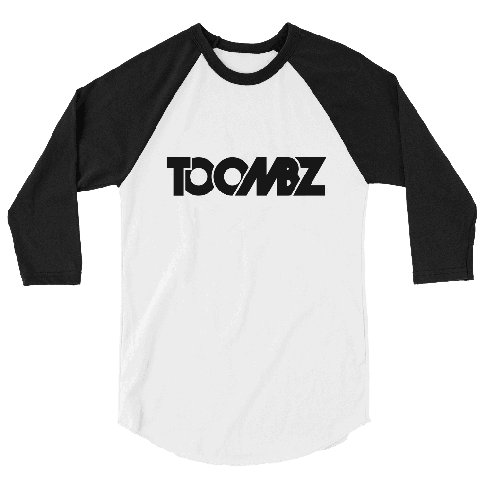 1 color screen print on white and black 3/4 sleeve raglan tee.